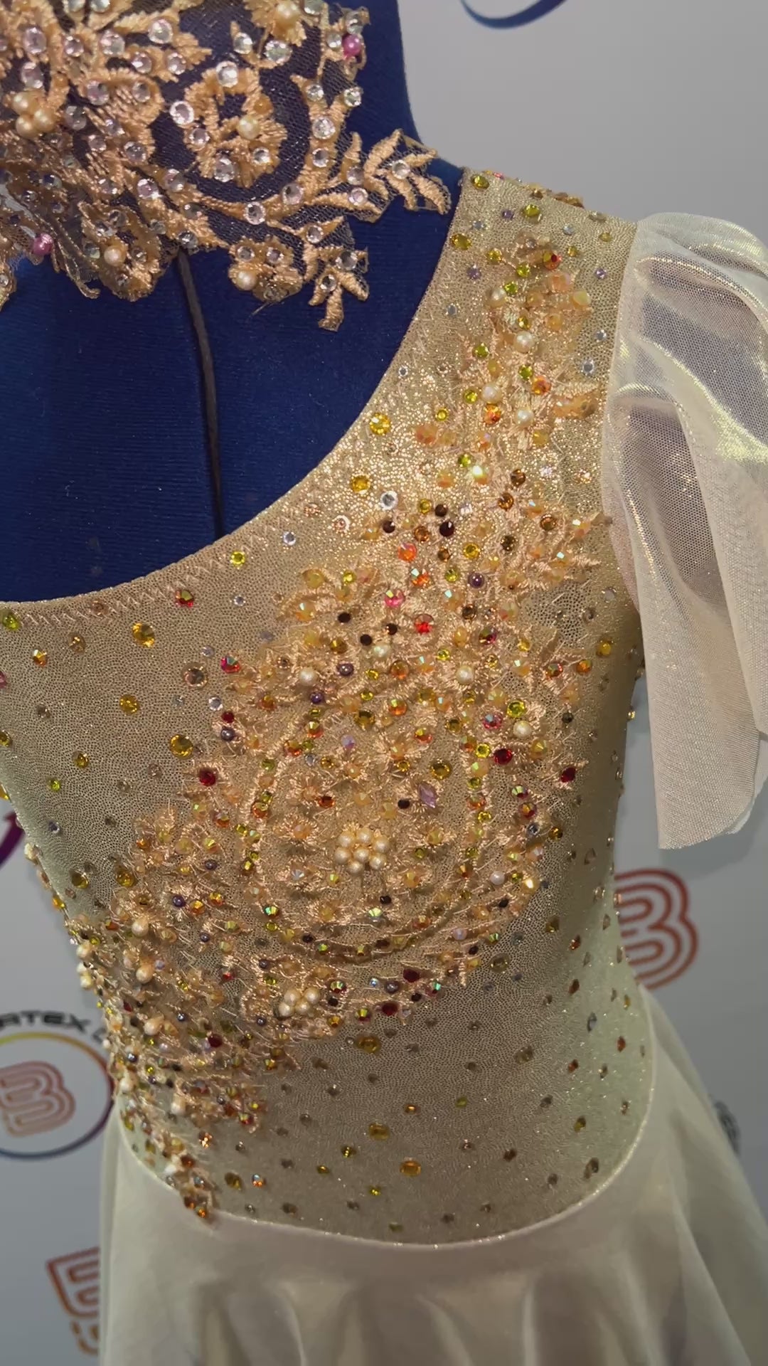 Shine on stage with this Gold Lyrical Dance Costume! Sparkling and one of a kind, it adds just the right touch of magic and charm to your performance. Perfect for twirling, leaping, and expressing every graceful moment with style and sparkle. Get ready to dazzle!