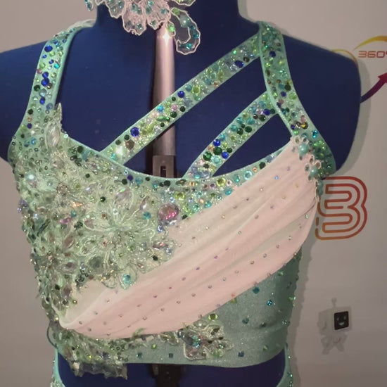Graceful and eye-catching, this two-piece dance lyrical costume in green and white is designed for young performers aged 7–8. The flowing silhouette and colour-blocked design create an elegant look perfect for performances.