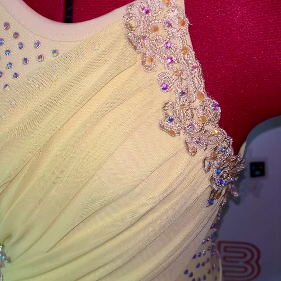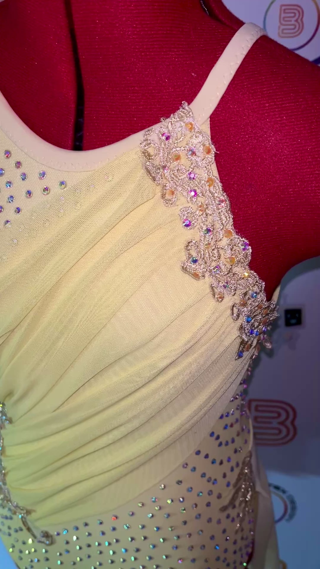 Bring the stage to life with this playful Yellow Dance Costume, featuring sunshine yellow fabric that shines bright. Sparkling gold details add a touch of glam, making every move dazzle under the lights. Perfect for dancers ready to shine and sparkle with every step!